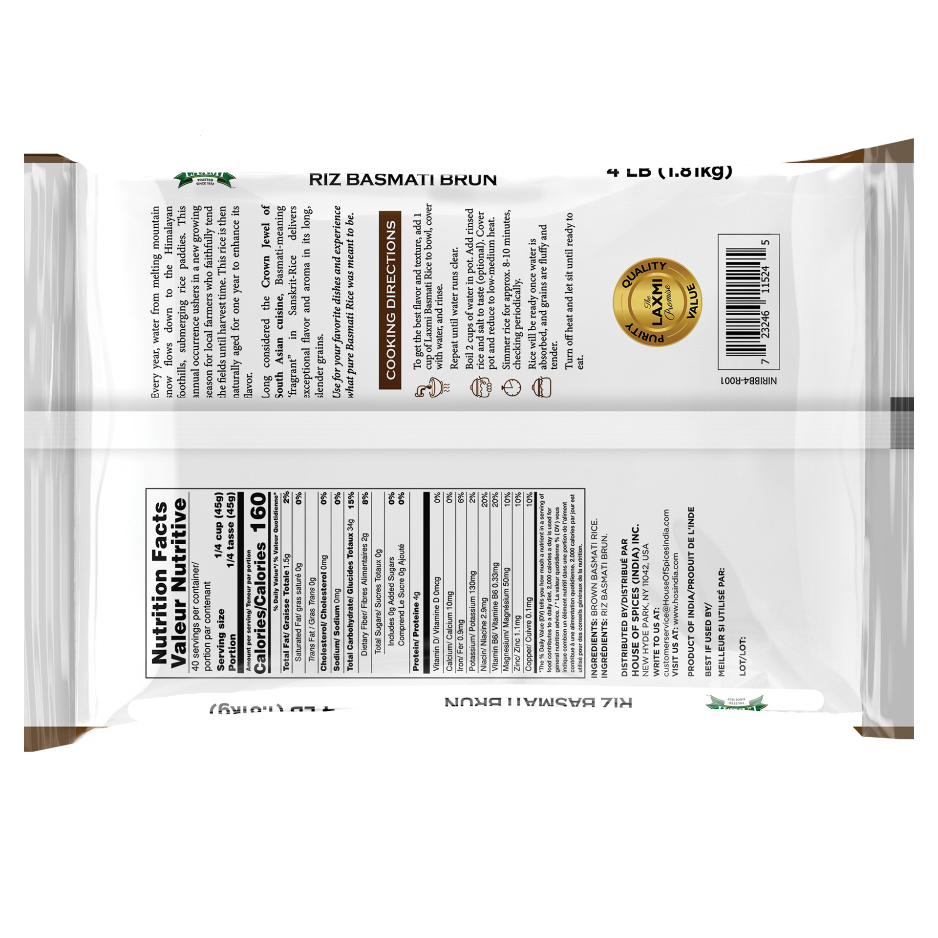 LAXMI BROWN BASMATI RICE 10X4LB(POUCH)